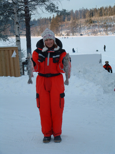 Det var verkligen fina bitar som kom upp, de två fiskar Annika håller upp vägde ca 1,3 kg vardera.