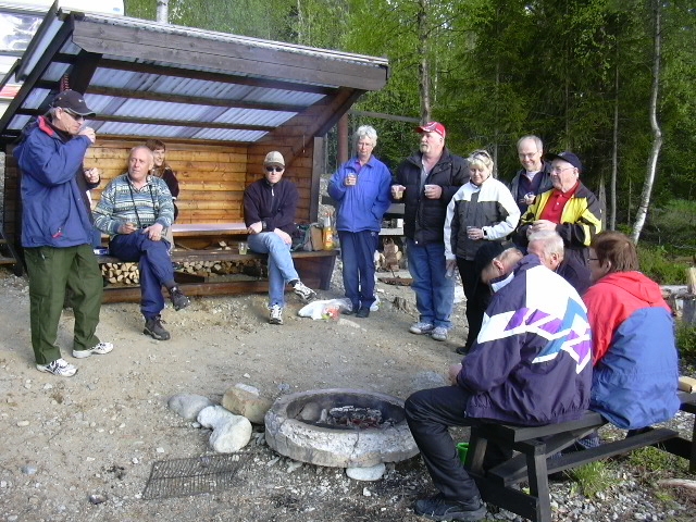 En intet ont anande Knut Östlund Uppvaktas av föreningen vid Abborrtjärn.